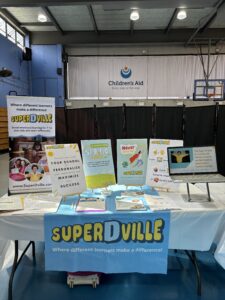 April: SuperDville has a booth at Children’s Aid